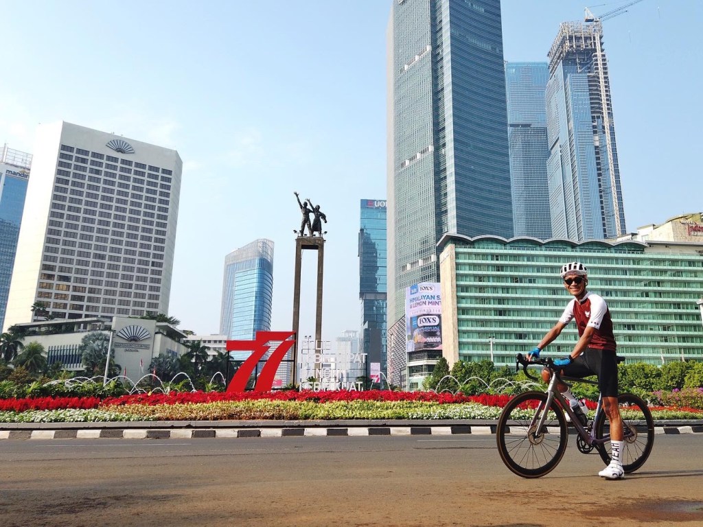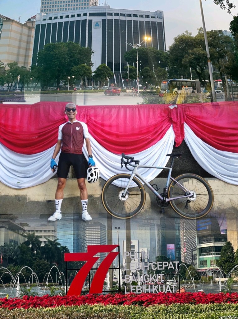 It was such a smart decision to wear the red-white Indonesia jersey, as I could easily disguise myself as member of peloton who mostly ride in similar dress code. Great way to save some watts 😊