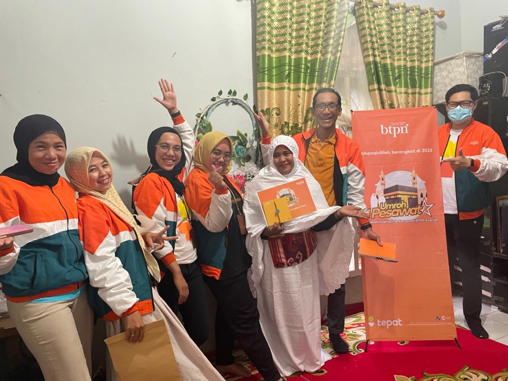 Kalimat ini selalu saya sebutkan usai mewakili perusahaan kami, BTPN Syariah, menyampaikan kabar gembira kepada empat orang nasabah di Lampung dan Palembang. Mereka terpilih sebagai salah satu dari 320 nasabah yang akan kami berangkatkan dalam program “Umroh 1 Pesawat” di bulan Februari tahun depan.
