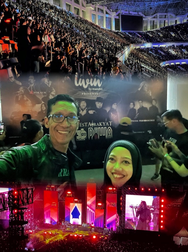 Ini kali ketiga kita berdua nonton bareng konser Dewa. Sebelumnya kita pernah nonton saat Dewa manggung di Pasar Festival. Di akhir 90an. Saat belum nikah. Masih Ari Lasso periode pertama. Yang kedua saat Dewa manggung di Kafe Barbados Kemang. Vokalisnya sudah Once. Dan semalam yang ketiga sepertinya yang paling berkesan.