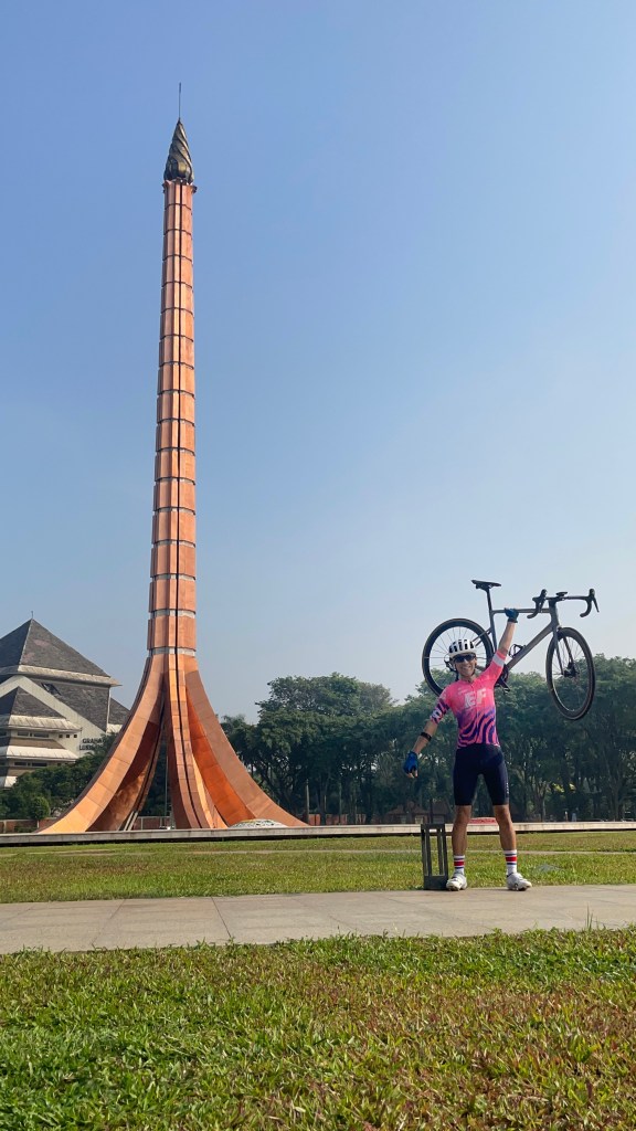 Dan ternyata benar. Setelah TMII direnovasi, track keliling TMII menjadi lebih mulus. Sangat ideal untuk ngebut dengan road bike. Karena tidak ada kendaraan bermotor, berpeloton pun nyaman. Tidak perlu takut diteriaki pemakai jalan yang julid.