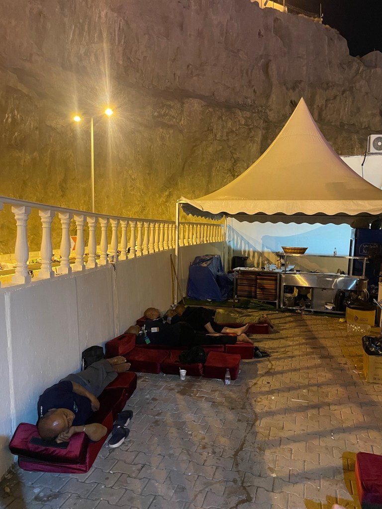 AC di siang hari gak terasa karena suhu luar 45-48. Sementara malam jadi kedinginan karena AC masih full power seperti seperti waktu siang. Belum lagi tidur kaki tidak bisa diluruskan karena sudah beradu kaki dengan teman penghuni lain.