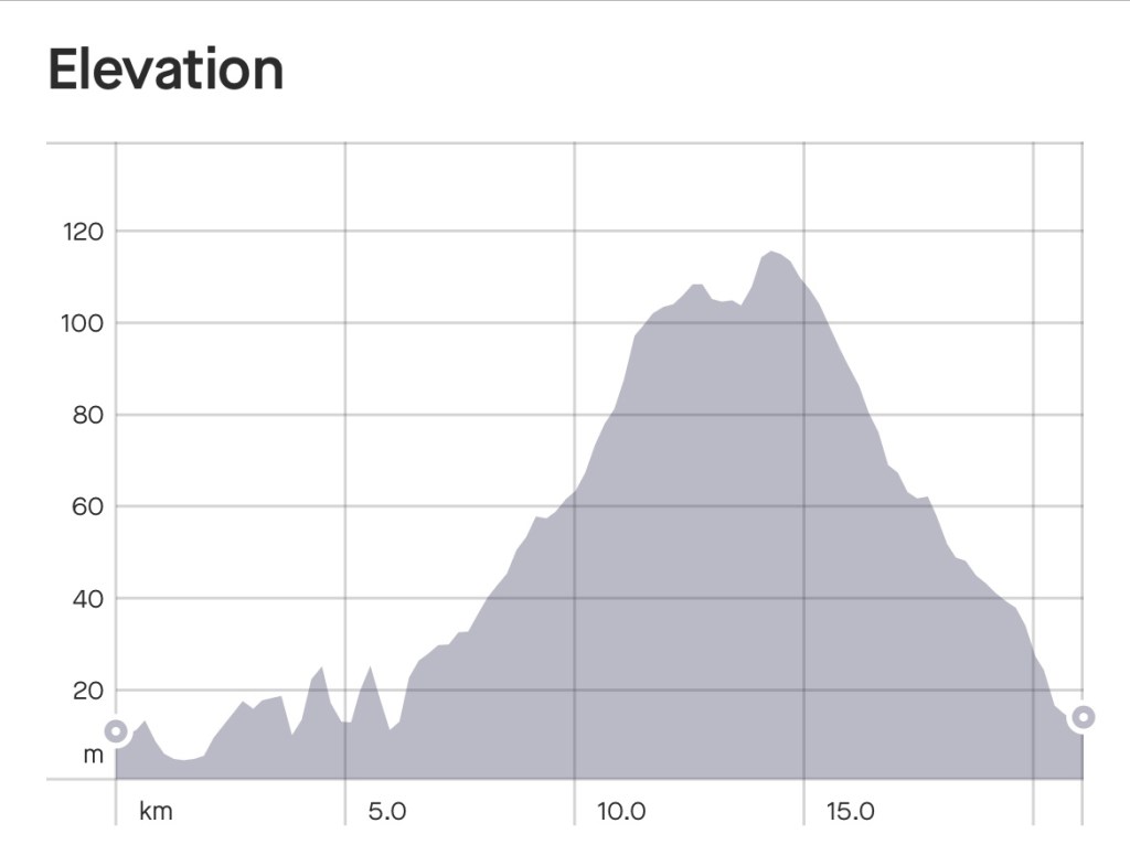 Oleh karenanya, saya mulai memetakan game plan untuk MBM. Dengan melihat peta topografi course MBM Half Marathon, saya ketahui kalau jalur akan menanjak terus dari awal Start sampai Km 14. Baru setelah itu akan turun sampai finish.