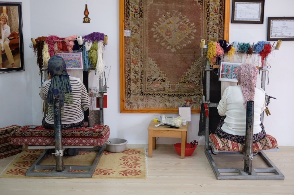 Di workshop ini kami lalu ditunjukkan empat pengrajin karpet tradisional Turki. Disebut tradisional, karena memang saat ini karpet pun sudah bisa diproduksi dengan mesin.