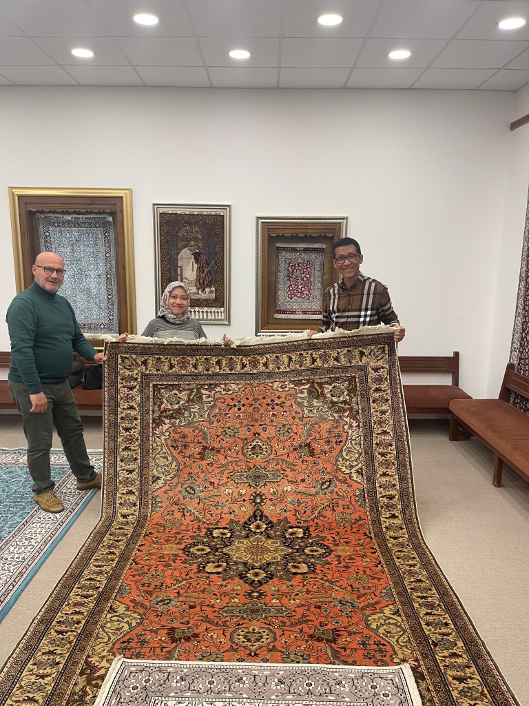 Kebetulan selama ini saya selalu penasaran, bagaimana sih cara membuat karpet. Terutama karena sering menggunakan sajadah untuk sholat, di mana beberapa memang produksi dari Turki.