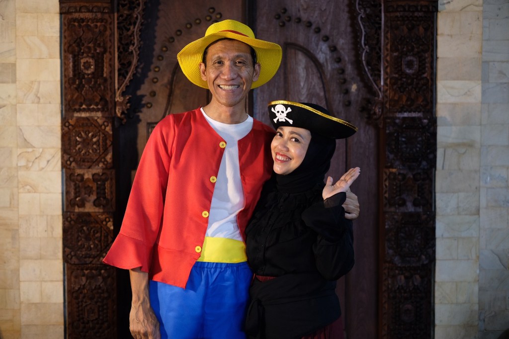 Saya sendiri dan istri menjadi King and Queen of Pirates. Walaupun berbeda genre. Kalau saya jadi Luffy dari One Piece. Elok terinspirasi dari Pirates of Carribean.