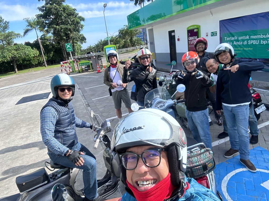 Hari ini bersama teman-teman T4 Cycling Club (ex ABN AMRO) saya touring naik Vespa. Klub yang jarang gowes bareng, malah sepakat nge-Vespa bareng (gimana sih? š )