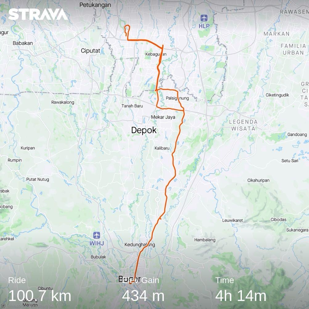 Akhirnya saya sampai di bilangan Cilandak sekitar jam 2 siang. Melihat odometer di perempatan Citos, odometer menunjukkan 95,8 km. Masih kurang 5 km menuju Century Ride. Dengan tenaga yang tersisa saya memutuskan memutari jalur lari 5K saya. Melalui Jalan Fatmawati – Jalan Kebon Besar dan masuk ke Jalan Poncol sebelum kembali ke arah Tarogong. Alhamdulillah, Century Ride kembali saya lakoni, setelah sekian lama! Thanks guys!