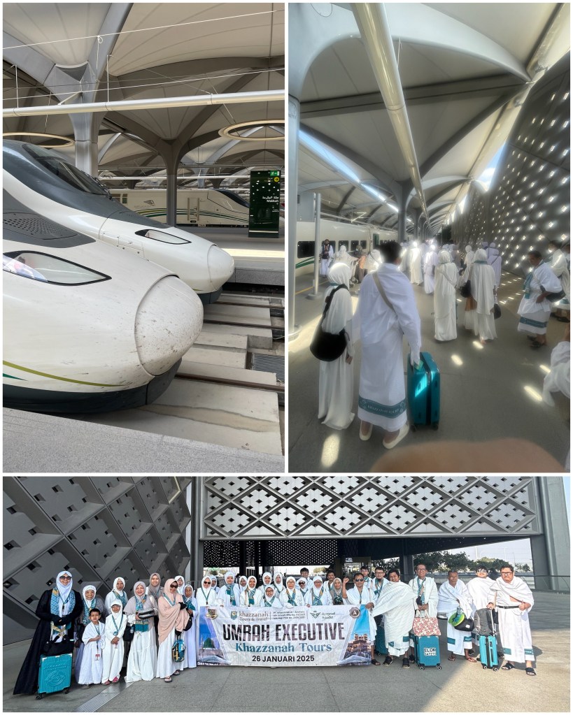 Pada Umroh kali ini, untuk pertama kalinya kami mencoba mode transportasi baru Mekkah-Madinah melalui kereta cepat. Kereta yang disebut Haramain ini dapat memangkas waktu perjalanan Mekkah Madinah yang sebelumnya 6 jam melalui bis, menjadi dua jam saja. Jauh lebih efisien dari sisi waktu.