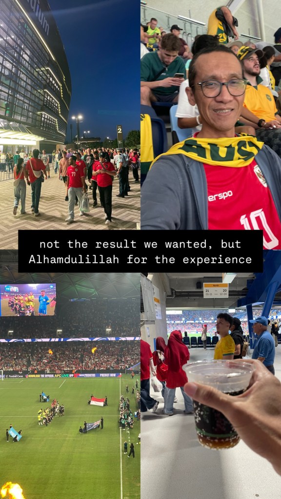Dan akhirnya Australia memang menunjukkan kualitasnya sebagai tim ranking duapuluhan di dunia. Mereka berhasil mengakhiri pertandingan dengan skor 5-1. Garuda dengan kenaifan strategi menyerang dari Patrick Kluivert jatuh terkulai dari angkasa. Di menit-menit akhir pertandingan, chant supporter Timnas kembali membahana. Tapi ironisnya kali ini memanggil-memanggil “Shin Tae Yong”. Kekecewaan tampaknya memuncak. Karena selain kalah telak, tampaknya pendukung masih belum bisa move on dari kepergian coach STY yang keputusannya diragukan oleh sebagian besar pendukung.