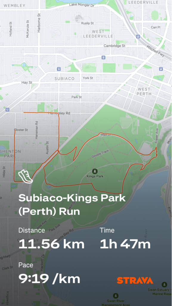 I ran from my Air BNB house in the Subiaco area and headed to Kings Park.