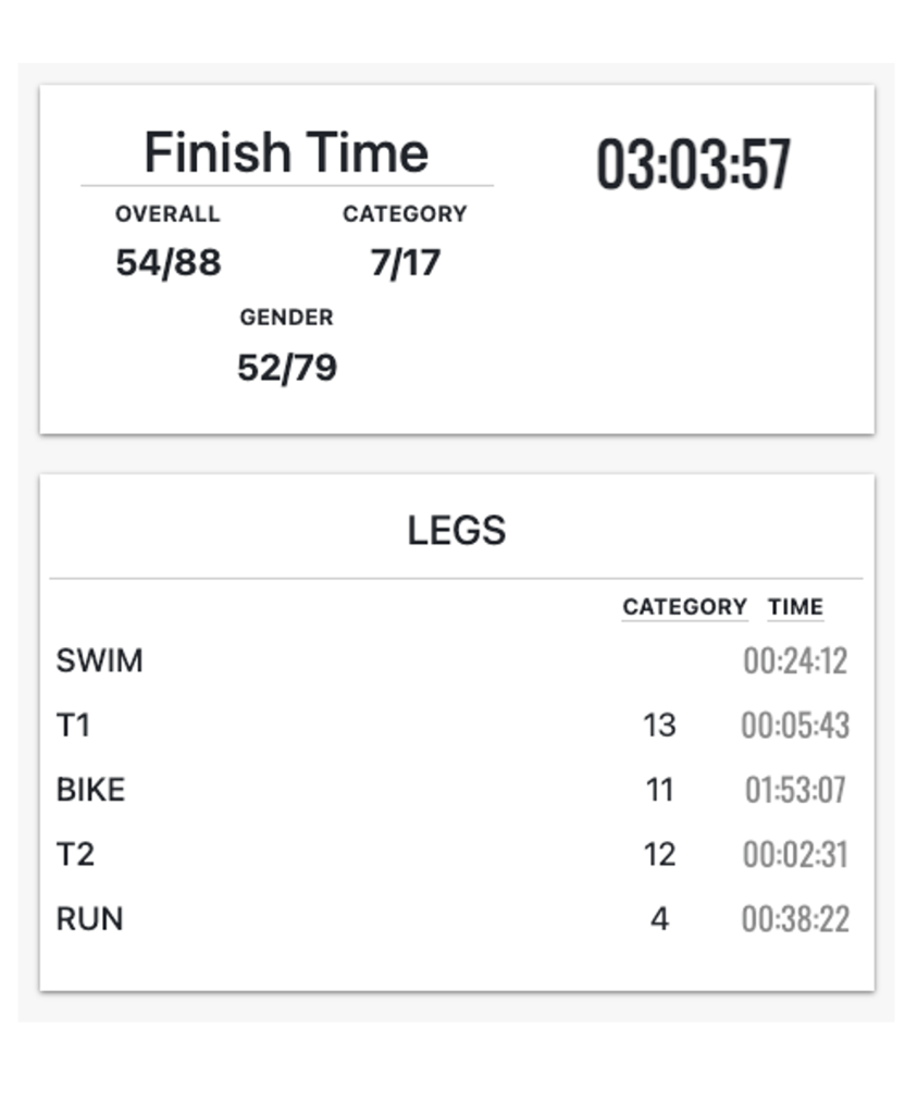Despite it’s my worst triathlon timing result, but I’m proud of finishing the race given all of the circumstances.