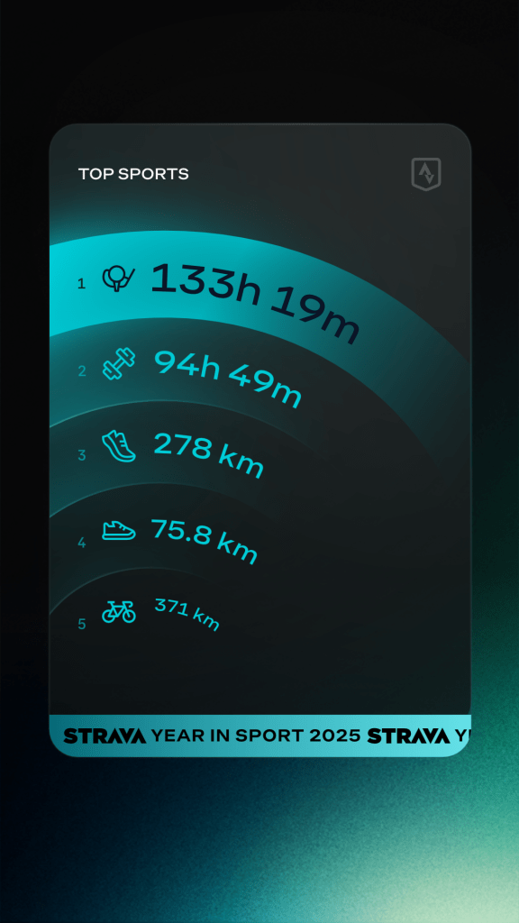In term of which sports I spent most time with, similar to 2024, Golf took most hours of my Sports days (no wonder, it took at least 4 hours per round). Strength Training came again in second, followed by Running.