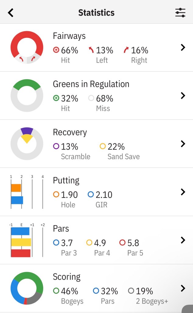 - Fairway Hits and GIR have not been changed for the past few years. It’s in the 66-67% for fairway hits, and 32-33% for GIRs. No wonder my Handicap is not going any lower 🙂